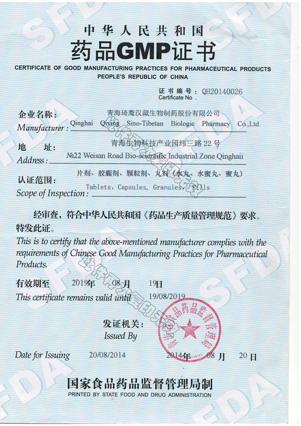青海琦鷹漢藏生物制藥股份有限公司獲得GMP證書